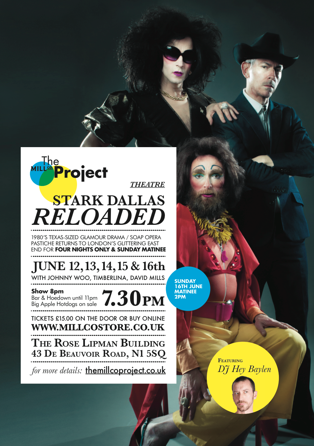 Stark Dallas Reloaded, Created by and Starring: Jonny Woo, Timberlina and David Mills is a 1980’S Texas sized glamour drama // Soap opera pastiche returns to London’s east for a limited time only!